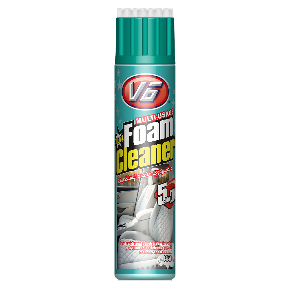 – Mousse Multi-Usage V6 650 ml, « FOAM CLEANER »: Nouvelle Mousse Nettoyante Multi-Usage, Produit d’Entretient Automobile, peut rapidement pénétrer dans les taches pour éliminer la saleté et la graisse et redonner un nouveau Look. Nouvelle mousse nettoyante pour l’entretien de diverses surfaces, utilisée dans les bureaux, les maisons et les voitures pour nettoyer et désinfecter le cuir, les chaussures, les portefeuilles, les réfrigérateurs, les machines à laver, les motos et les voitures.