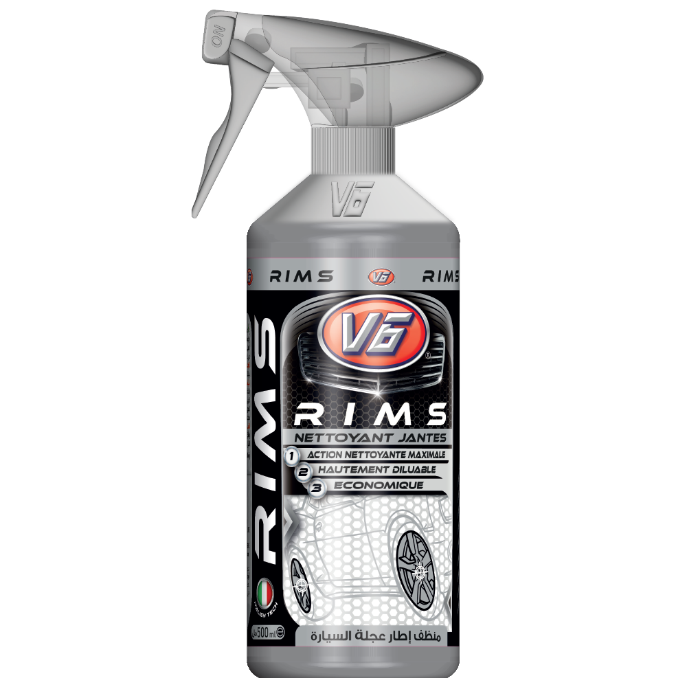 -Nettoyant Jantes Automobile (V6, 500 ml) « RIMS »: Action nettoyante maximale / Hautement diluable / Economique.